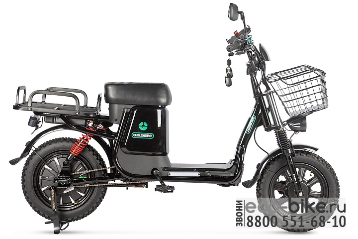 Gelbert Condor 2 оснащен энергичным электромотором мощностью 240 Вт и напряжением 60 В, что обеспечивает уверенный разгон и плавную езду. Диаметр колес составляет 16 дюймов с шириной 3 дюйма, что гарантирует отличное сцепление и комфорт даже на неровных дорогах.