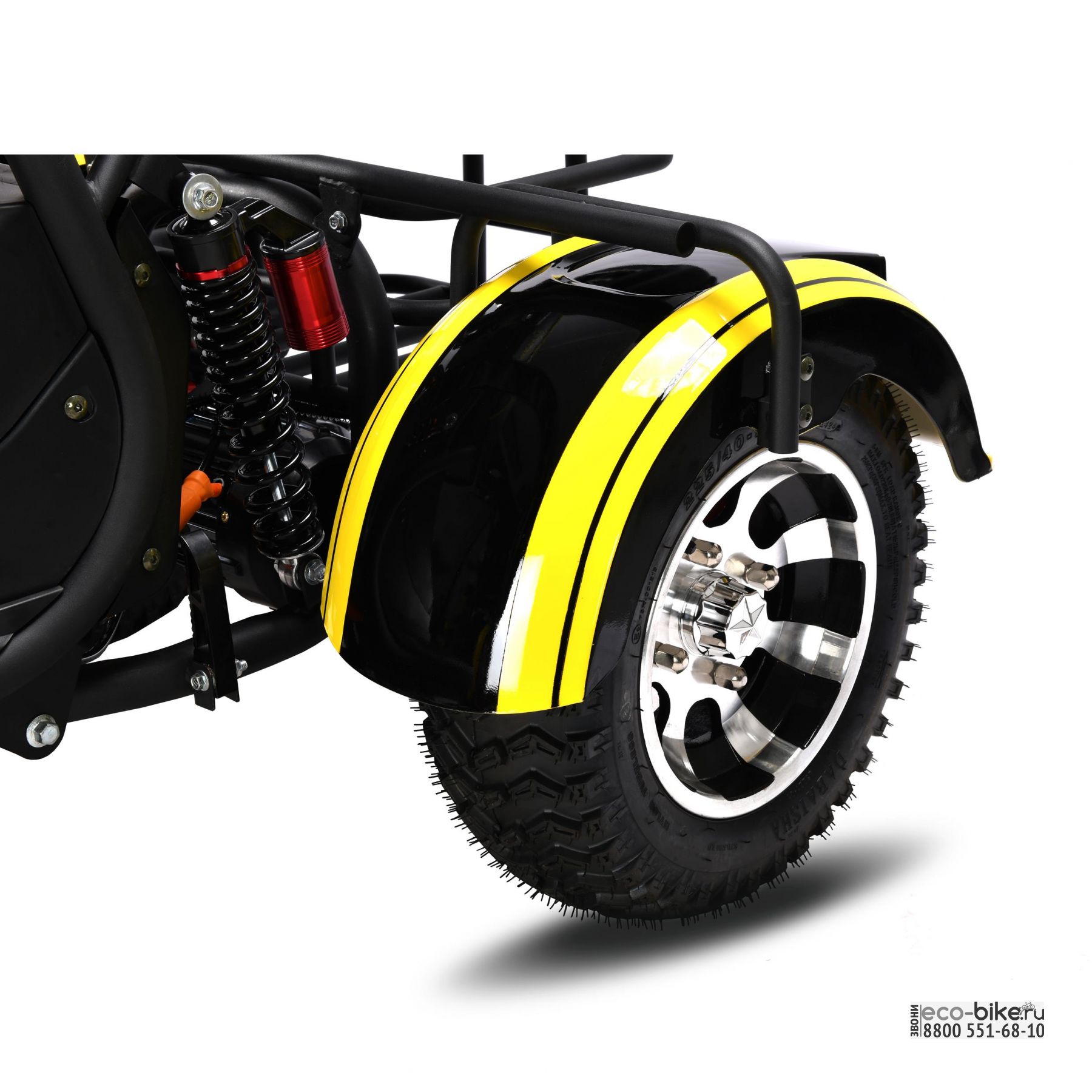 • шоссейная резина на 10-дюймовых колесах с низким профилем позволяет круглогодично использовать скутер и без проблем передвигаться по бездорожью и пересеченной местности;