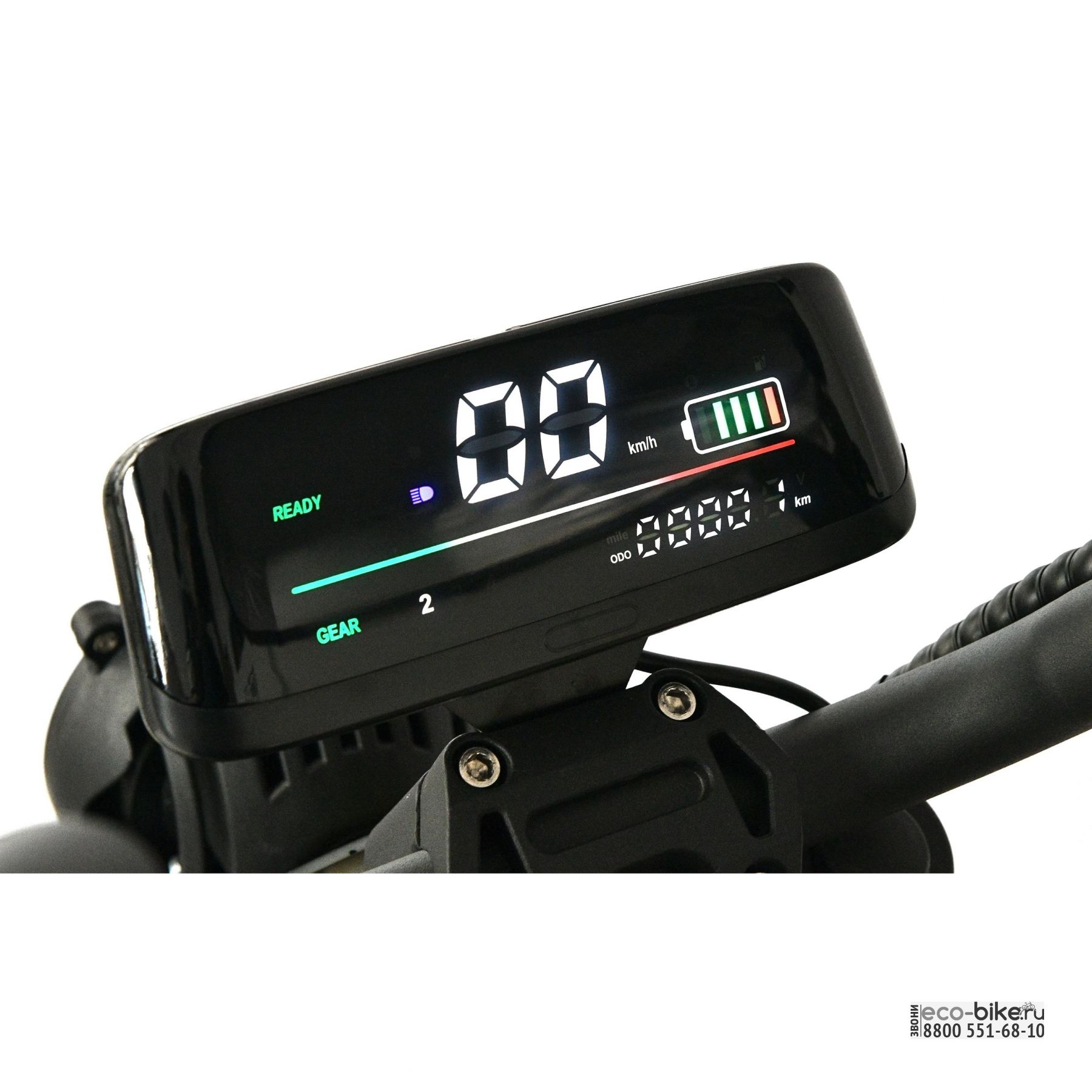 • цветной дисплей расположен в удобном месте над выносом, информацию на нем видно при любом освещении;