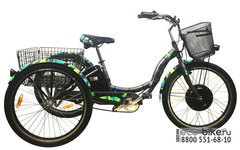 это качественный, мощный, легкий, с большим пробегом трехколесный электровелосипед на 100% Российской сборки.  За основу взят трехколесный велосипед Stels подмосковного производства который в последствии нашими силами был качественно электрифицирован. В итоге внешний вид практически не изменился, трицикл выглядит красиво, аккумулятор аккуратно спрятался за сиденьем, а самое главное мы получили шикарные характеристики для такого аппарата.
