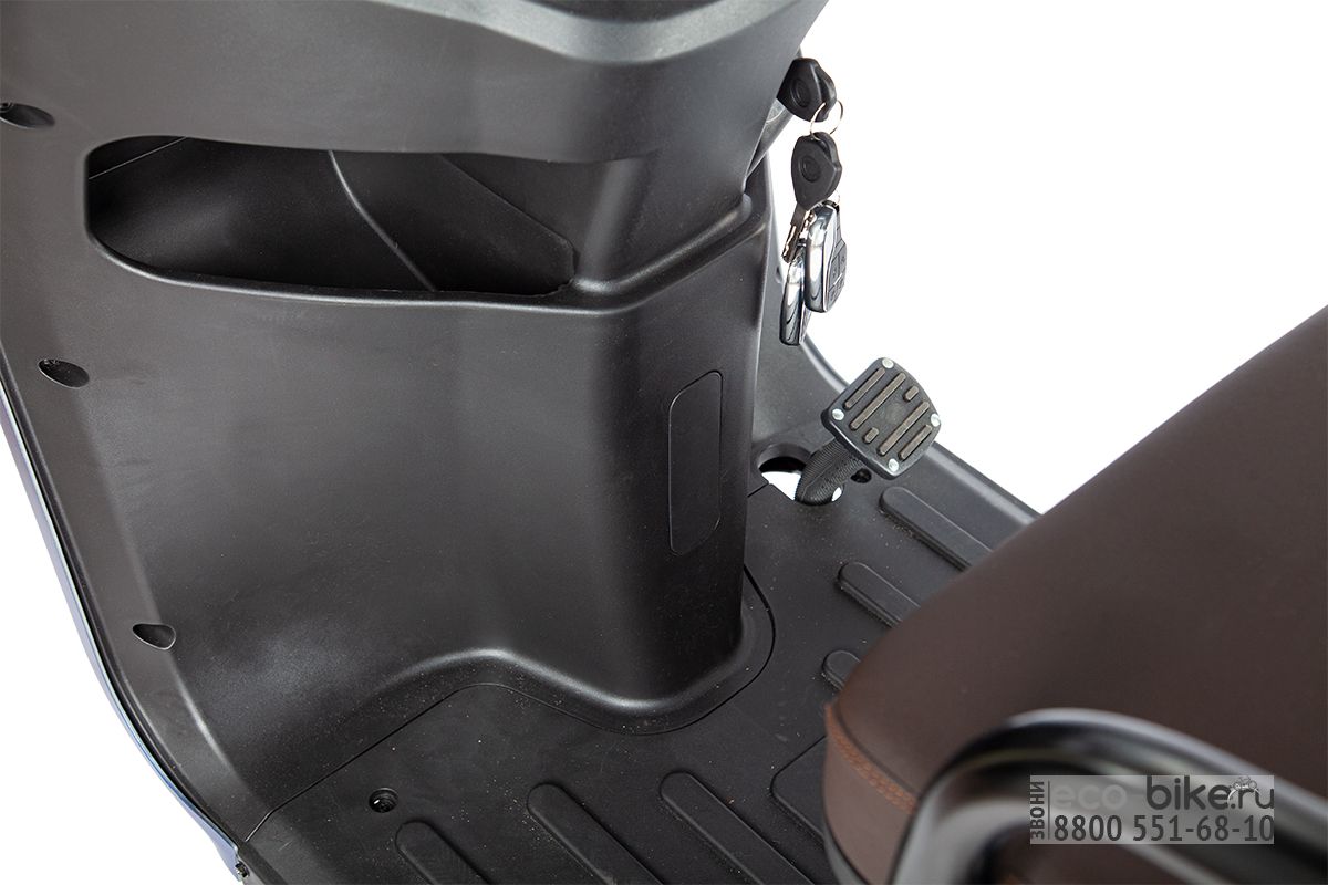 Под задним откидным сиденьем расположен вместительный грузовой отсек, в задней части — металлическая корзина с замком.
